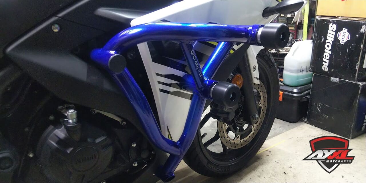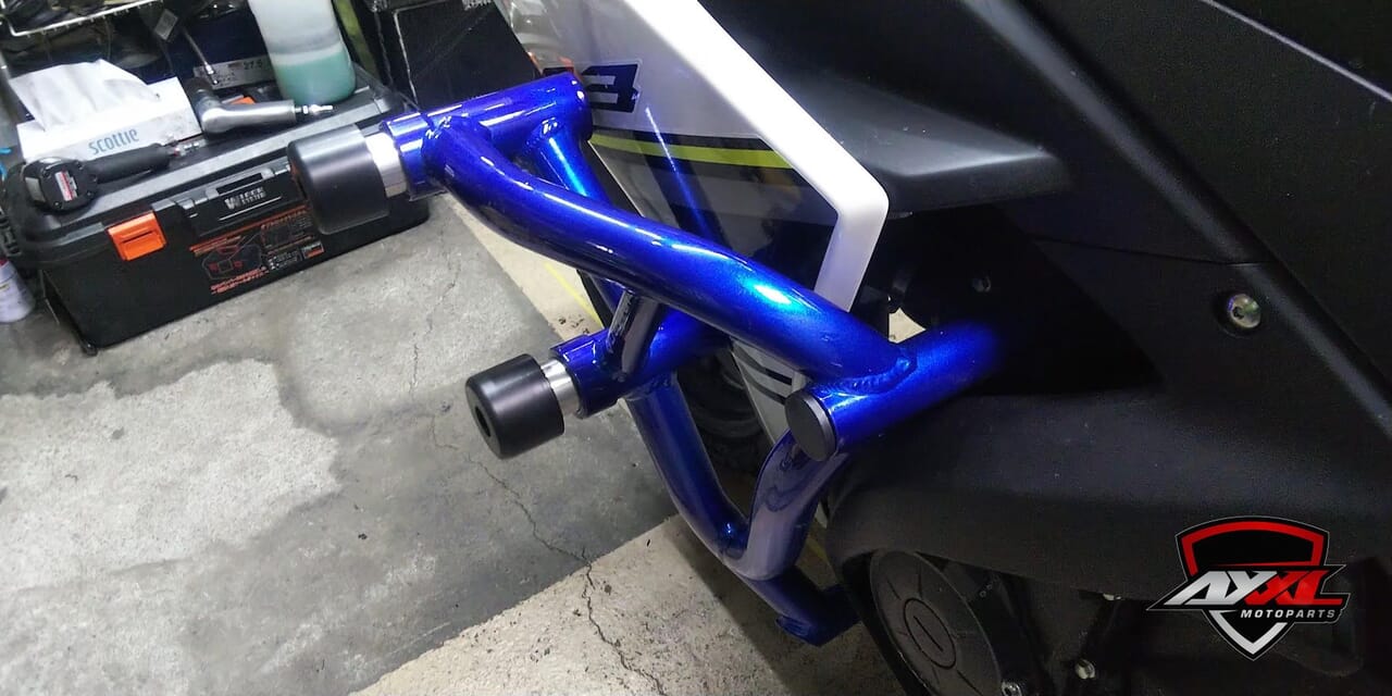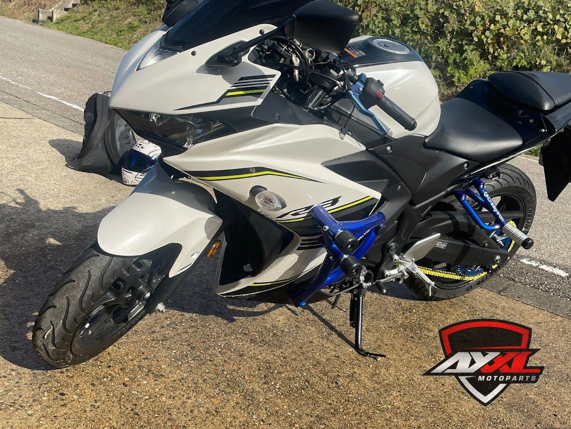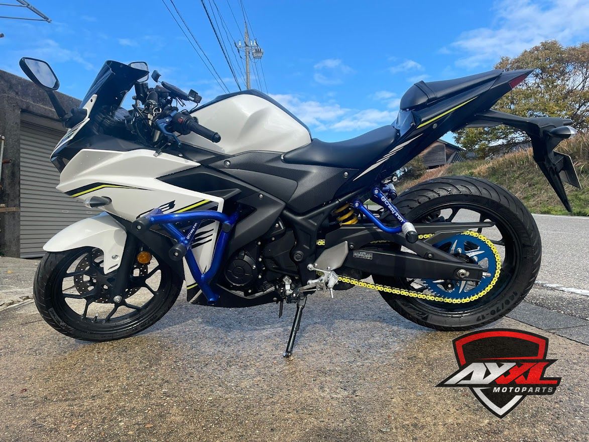 YZF-R3 (15-18) axxl-k2021-12-01T12:23:43+09:00 0 2021年12月1日 YAMAHA カスタムバイク 装着パーツ ・CRAZY IRON スタントケージ/ダンパーモデル(キャンディーブルー) ・CRAZY IRON サブケージ(キャンディーブルー) ・RSC クラッチレバー ・VORTEX リアスロケット(54T) ・カラーチェーン(イエロー)